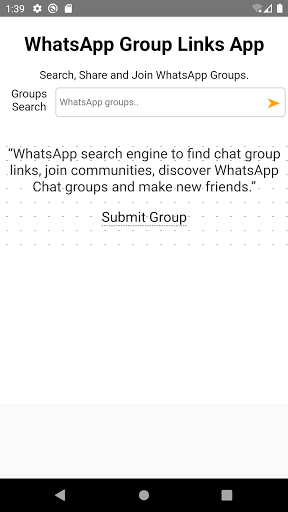 Group Links App is a WhatsApp search engine to help you find and discover interesting WhatsApp groups online to join with invite links.