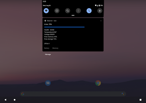 Save , increase , manage and observe your device battery and memory stats right when it is necessary . No Ads . FREE .
