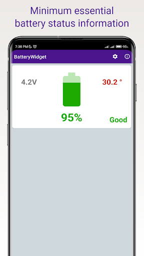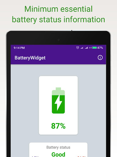 The widget consumes a minimum of energy and does not require any additional permissions on the phone. Its only function is to accurately and clearly show the charge level of your phone.