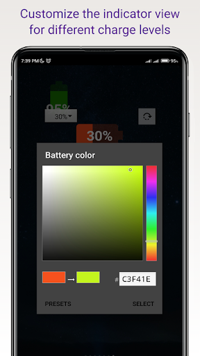 This app provides you with a simple and visible indicator of your phone's battery charge.