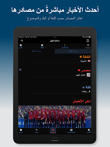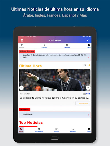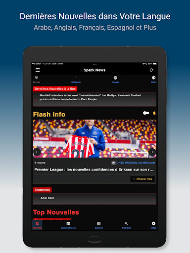 The App User Interface supports Arabic, English, French, and Spanish languages (more to come soon) and the user can easily switch between them to get all the breaking world and local news in the selected language. The Interface also provides Dark and Light themes and the user can easily switch between them.