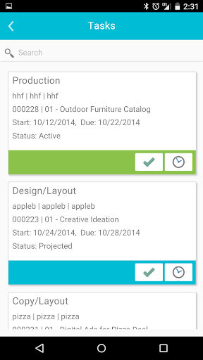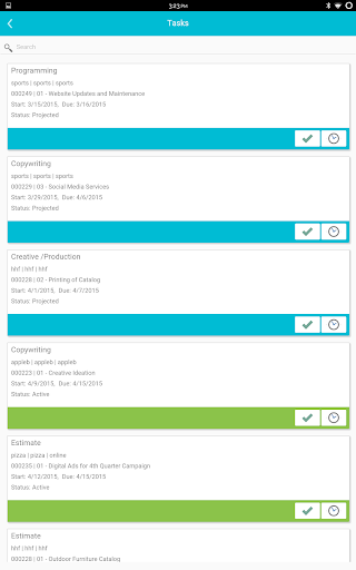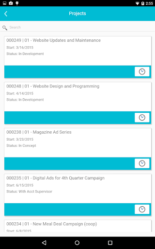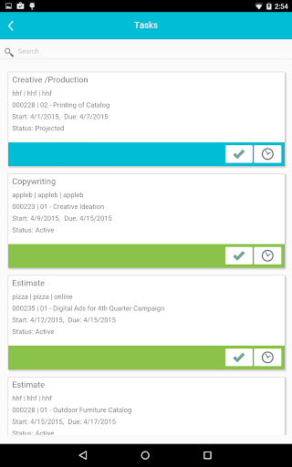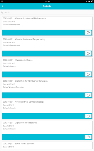 Mobile interface for Advantage Software Ad Agency Management.