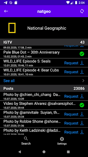 3. Find the account you are interested in in the search