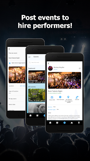 Want to host Jazz Wednesdays and Rock Fridays for your bar? It can be a hassle to continuously have to look for different musicians. With Jam, you can easily find the right fit. Simply post your event details, and watch the applications come in! Or if there are particular performers you have in mind, send them a booking request directly! Furthermore, you get free publicity of your venue simply by having your event on the map!