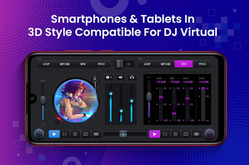3D DJ Music Mixer app enables you to mix, remix, scratch, loop or pitch your music in the palm of your hands. You can also create, save, and load playlists, and mixes songs.