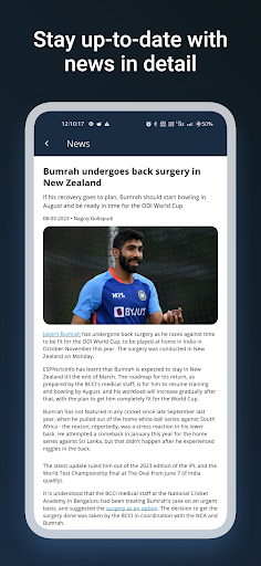 • Quick live cricket score updates for ODI, IPL, T20, and more