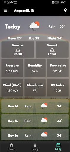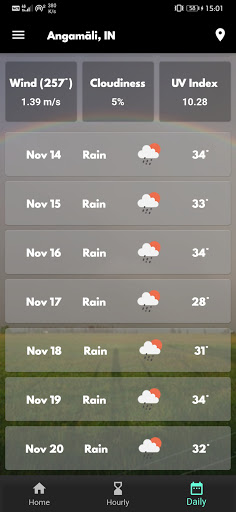 Klima comes with an amazing user interface. There are 3 easily accessible tabs 1.Home - where all current weather information displays with an overview of hourly and daily forecast. 2.Hourly - where detailed hourly forecast is displayed. 3.Daily - where detailed daily forecast is displayed.