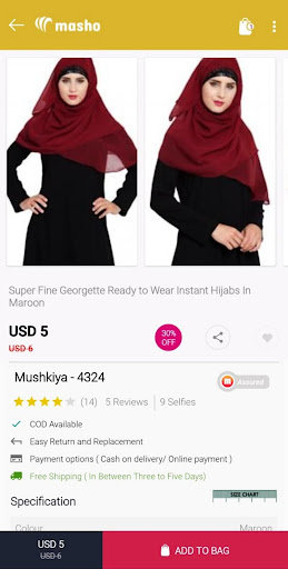 Masho established with an aim of providing best islamic clothing online store for Muslim Women’s who are in search for elegant and modest fashion.We are a leading online shopping platform in Middle East started in 2019.We offer beautiful modest wear and trending fashion online dresses like Islamic Wears, Arabian Wears, Abayas, Burqas, Full Sleeve Kurtis, Hijabs, Niqabs, Scarves, Stoles, Kaftans, Tunics, Khimar and complete range of accessories.Masho, as a Muslim Women Fashion store our main aim is to provide our customers best and quality clothes and accessories at affordable prices.The most important thing that a lady looks in an modest clothing is something that represents her modesty and beauty at the same time comfortable and stylish. Masho's collection of clothes are extra ordinary in quality and style.Pick out the most desired Islamic dresses from our latest arrivals to look gorgeous in your parties and functions from masho. Enjoy buying trending clothes and get offers and deals for all the purchases.We have a set of special discounts and coupons for our customers who try to shop from Masho.com. Now you can make use of beautiful designs and patterns of stylish dress designs right at your doorstep.We have a collection of modern Muslim clothes with trending styles and we will always choose modest outfits for Women.So let's shop your attire through our online shopping store and enjoy.