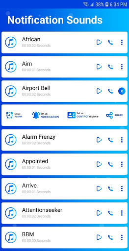 You can play them and set as your default ringtone, notification, alarm, or set as contact ringtone by just single click.