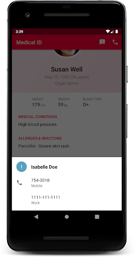 Medical ID allows creating medical profiles that are accessible from the lock screen of your device. In case of emergency, the app enables quick access to vital information such as your allergies, blood type, medical contacts, etc. that are essential to attending first responders, medics or medical staff having to take action.