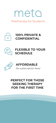 The best part of META is that we’re 100% confidential. You control when and where you meet a provider. There’s no awkwardness from walking into a clinic. Just easy access to thousands of licensed professionals who want to work with students just like you.