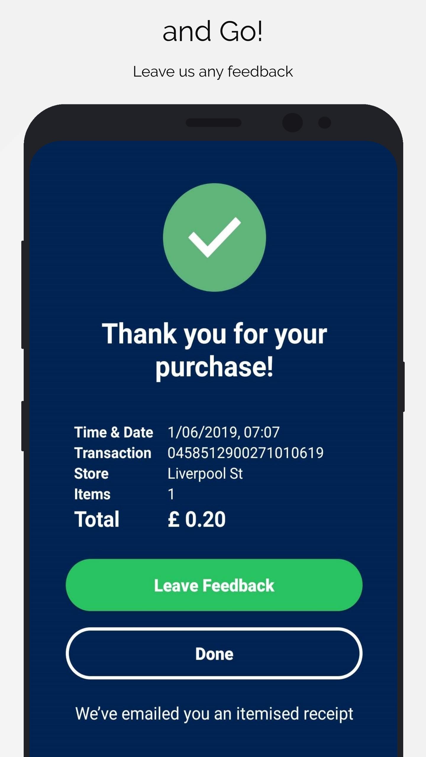 If you have any feedback about the app or your Scan & Go experience, please complete survey in the app