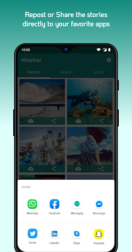 - Easy share of status photos & videos to other apps