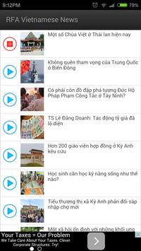 On purpose of sharing new of current Vietnam situation, I created a free application RFA Vietnamese News. Users can listen to all latest update news from Radio Free Asia by 1 click on play button.