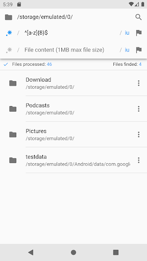 With Regex Search you can search for files by name and content using plain text or Regular Expressions.