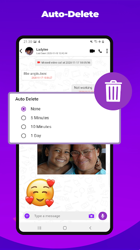 Enable auto-delete message to clear unwanted messages without any hassle. Choose between 5-minutes, 10-minutes, or 1-day.