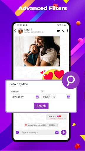 The conversation search feature allows you to find the messages easier with any keyword or date.