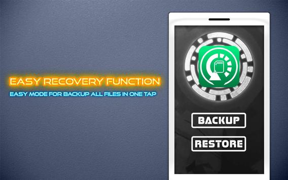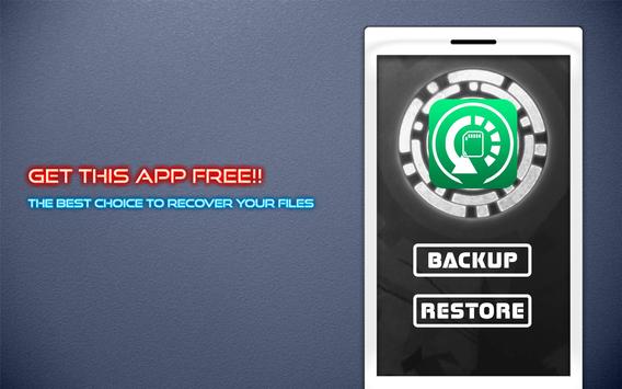 SD Card Recover File is a very powerful application that can backup or restore all applications and a few other things on your phone installed. You can do it with a SD Card Recover File put your MMS, SMS , bookmarks , call logs, system settings, alarm clock, all access points and applications are backed up. Speed ​​Save your work very fast and easy, you just press a few buttons , it will start working.