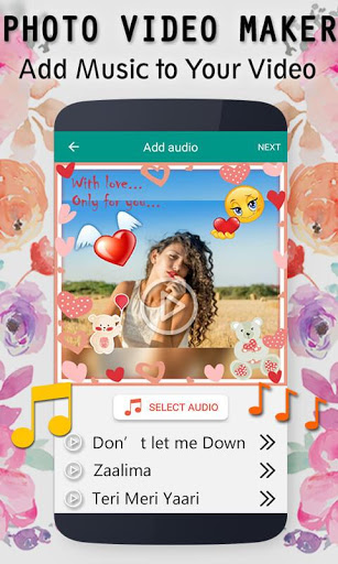 app. Choose music from SD Card and Edit the length of the music and apply to your movie/slideshow. Preview of video with music before creating movie.