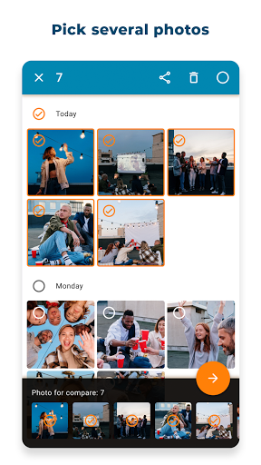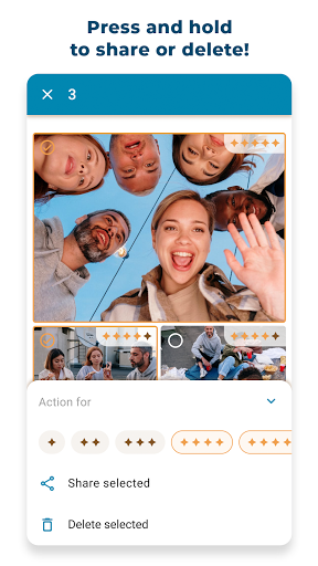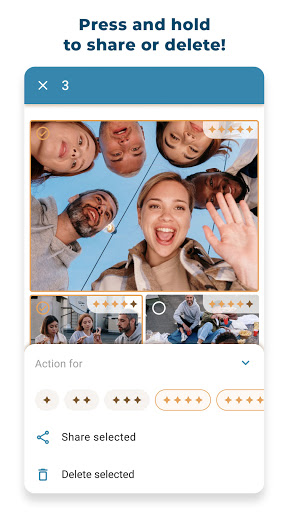 Share the best photo with social networks, different messengers, email, or delete the worst photos based on these results.