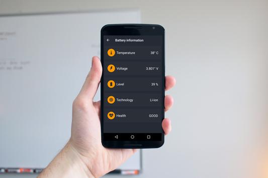✓ Detailed battery information within the main application screen. You will be able to see the percentage of battery power as well as the temperature in ° C, battery voltage and finally the level.