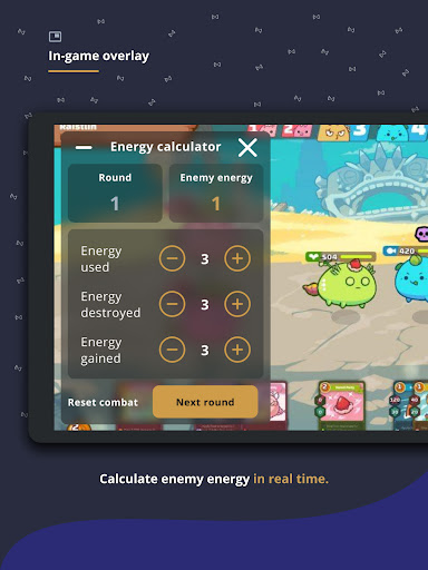 • Use the in-game overlay to track and calculate your enemy energy during a match with Tacter for Axie energy calculator. You'll know in advance how much energy and cards your enemy can use!