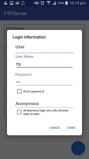 Make your android phone/tablet as a FTP Server! Use this free app to host your own FTP Server on your phone/tablet. Use the FTP Server to transfer files, photos, movies, songs etc...to/from your android device using a FTP client like FileZilla.