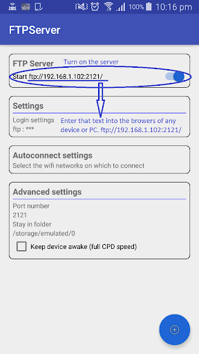 Read/write any folder, including sdcard, in your android device with this ftp server. You can backup your photos to your PC, copy music and movies to your device, etc.