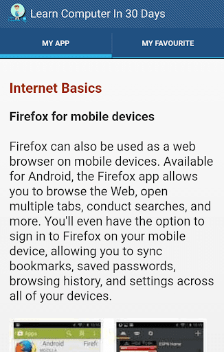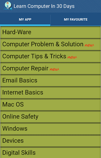 Learn Computer In 30 Days is in hindi language. In this application you can learn computer from home. Learn computer in hindi application is made for who dont know about computer.