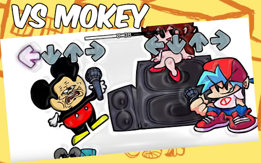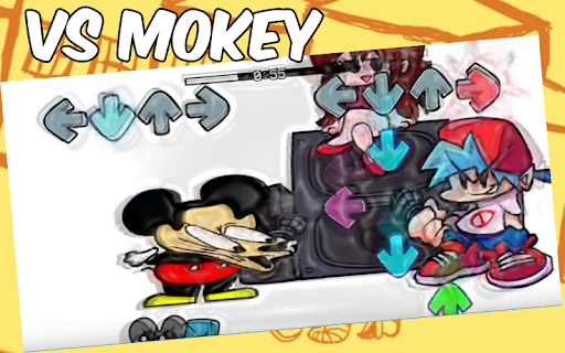 VS Mokey & Grooby FNF has 3 new songs that include funny sound effects and character movements. These are songs with a high level of difficulty, in which the arrows go at full speed to offer one of the funniest challenges of the FNF. In the first song we will find the meme version of Mokey in a battle against BF, in the second song Goofy will also appear as an opponent and Donald as a spectator, and in the third song we will see a very muscular version of Goofy. Play and Enjoy, dont forget to rate us