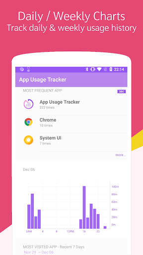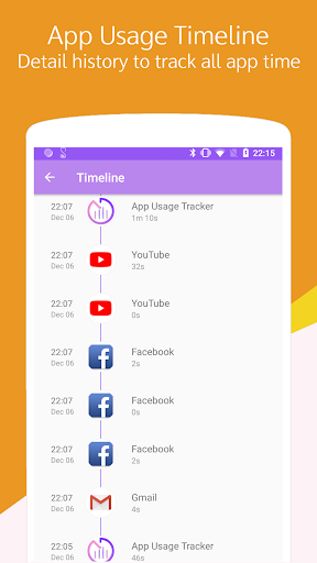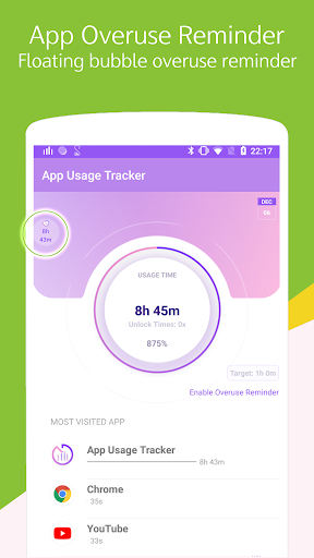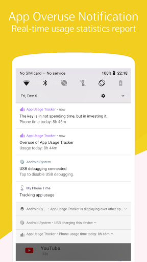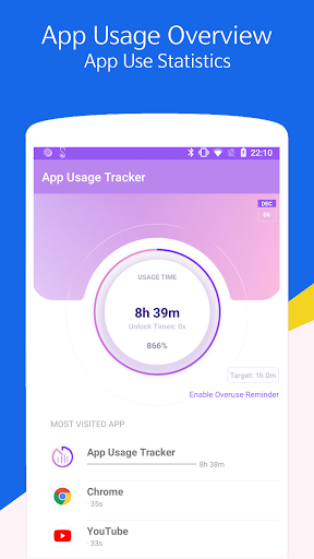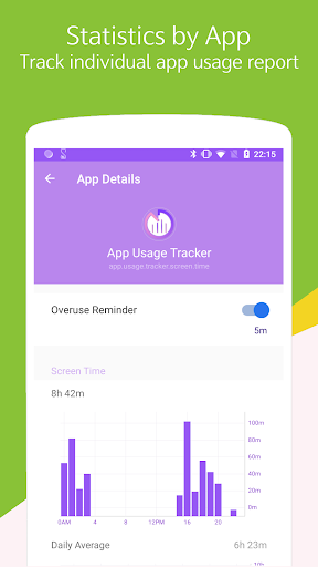 Time to track detail app use statics to avoid getting addicted to apps. App Usage Tracker provide app statistics report and overuse reminder to help you to review your phone usage history