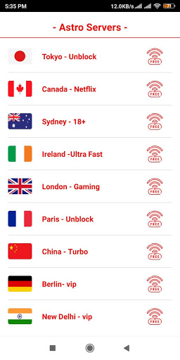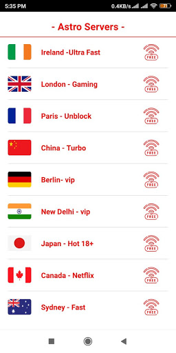 Enjoy multiple proxy server to bypass blocked website and apps as in case you were in another country from now with AstroVPN