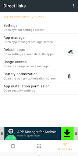 • Direct settings links