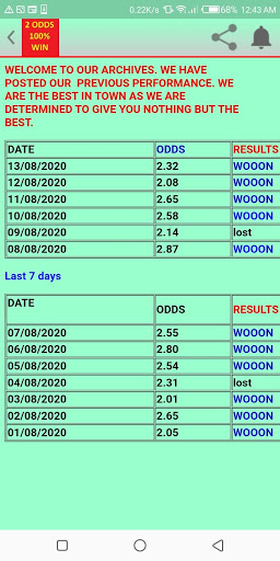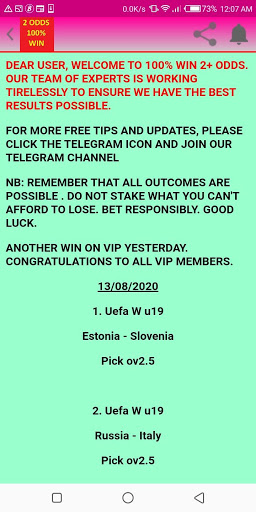 Thank you for visiting us. we are here to give you nothing but the best. We offer only one slip a day having 2 odds. Our analysis is very accurate and therefore feel free to stake high