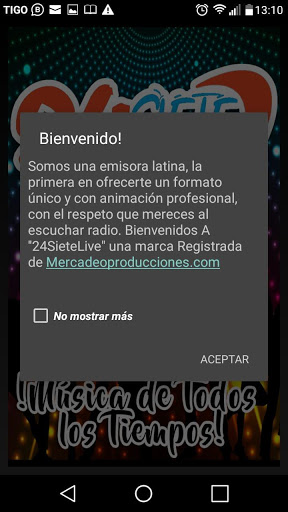 Somos una emisora latina, la primera en ofrecerte un formato único y con animación profesional, con el respeto que mereces al escuchar radio. Bienvenidos A ''24SieteLive" una marca Registrada de Mercadeoproducciones.com