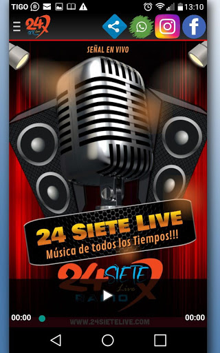 Somos una emisora con el único formato y propósito de brindarte 24 horas de música de todos los tiempos en vivo y con el mejor sonido. Señal En Directo 24/7. Esperamos puedas gustar de nuestra programación tus comentarios y sugerencias son importantes para mejorar cada día reiteramos la más cordial de las bienvenidas somos 24SIETE_LIVE.