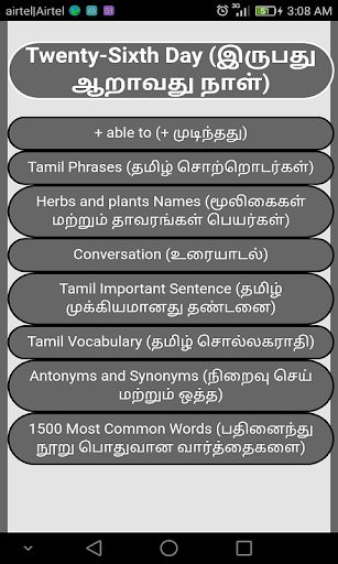Learn English Through Tamil app contains all basic words.
