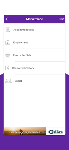 - Marketplace – Accommodations, Employment, Recovery Business Directory, look for a job, sober roommates, and support a local business owned by people in recovery