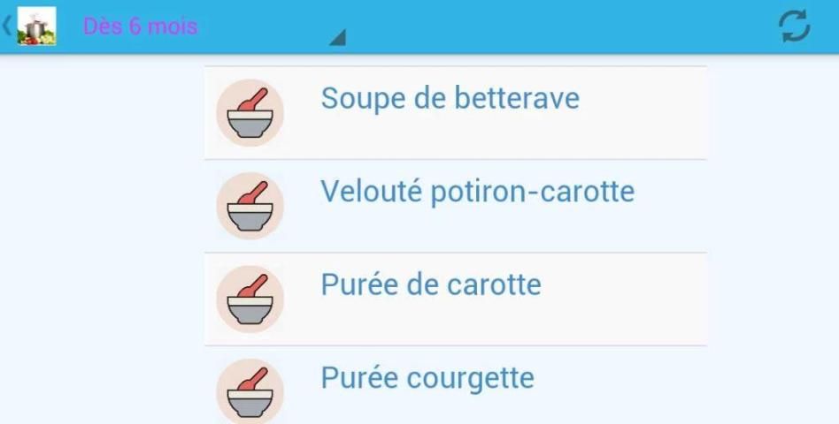 Application de recettes Découvrez des idées de recettes pour bébé à partir de 6 mois pour que l'alimentation de votre bébé soit adaptée à ses besoins et l'aider à bien grandir,