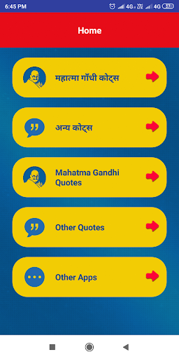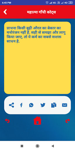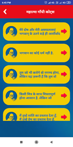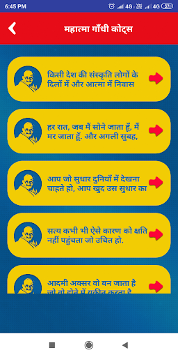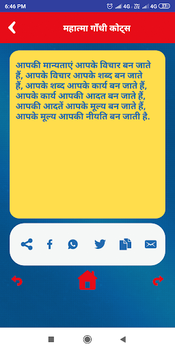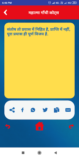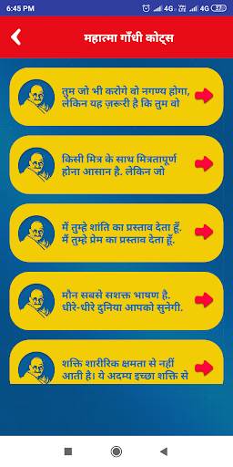 Mahatma Gandh Anmol Vichar in Hindi app bring together the most ionic and conceptual quotes from Various Famous peoples. It's quite simple to use and even non technical person can use this