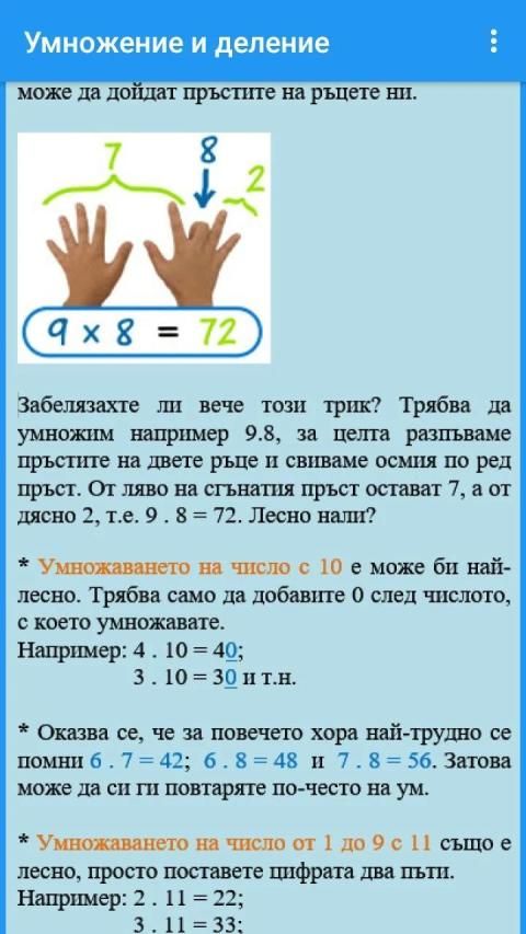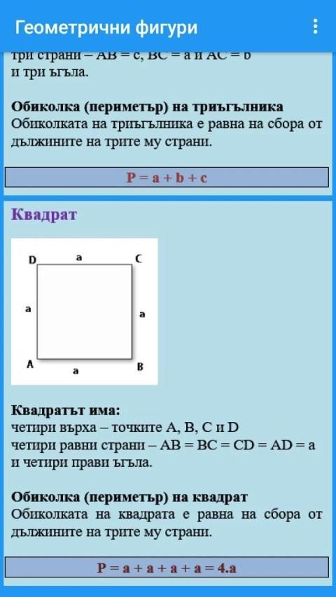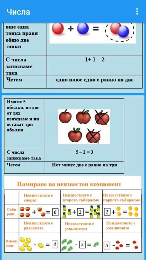 Информацията е специално поднесена, за да спомогне бързото и лесно ориентиране в материала само с един поглед. Това прави приложението особено подходящо за използване при текущата работа в клас, при подготовка на домашни и при преговор преди контролни.