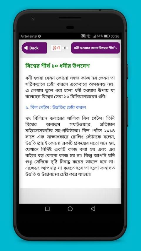 Who does not want to be rich, but everyone knows what is the way to become rich? Some of the approaches that we've mentioned in this app, which will help you to be rich. The main thing is the hard work and perseverance, and if you can share your success story. While many of us have a desire to earn lots of money, but we are lazy to look straight road. Believe me, there are easy ways to earn money, they have a lot of trouble. Many people earn money online through outsourcing and freelancing quickly becoming a billionaire, millionaire dream would be some revenue with YouTube. In fact, things are not so simple, to make money, there is no shortcut technique or formula if the two nambari. Any job that will stay in your dedication. If you sit all day in Bengali shoes, sports millionaires, rich, and whatever it is fun to play if you can not be rich. Learn techniques that will save you money, the cost will be calculated, however, I found this to be calculated without knowledge of science. If you want to hear the words of the success of others is the way to be successful you need to know before you? If you are a Muslim can pray to increase mental competency, mental competency can pray regularly, and also trying to make dua. Just simply download the app must be the way to becoming a billionaire in mind it would be worth to be done.