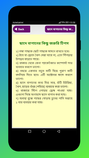 বাগান করা একটি শখের বিষয়। অনেকেই বাগান করতে চান কিন্তু উপযুক্ত গাইডলাইন না থাকায় হয়ে উঠে না। বাগান করার নিয়ম অ্যাপের মাধ্যমে আপনি খুব সহজেই বাড়ির ছাদে ফলের বাগান, ফুলের বাগান করতে পারবেন। আপনি যদি নিজেই শখ হিসেবে বাগান করতে পারেন তাহলে কষ্ট করে আমার শখ বাগান করা অনুচ্ছেদ বা রচনা শিখতে হবেনা। যারা হোম কোয়ারান্টাইনে আছেন, সময় কাটানোর কি করা যায় ভাবেছেন তারা এখন খুব সহজেই বাগান করে অবসর সময় পার করতে পারেন।
