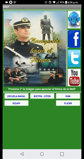 โล่บนหน้าจอพวกเขาพาเราไปที่เว็บไซต์ของพวกเขา และเครือข่ายสังคมออนไลน์ นอกจากนี้คุณสามารถดูทีวีฟังวิทยุอ่านนิตยสารทุกวันและหลากหลาย เช่นเดียวกับลิงก์ที่มีข้อมูลสำคัญที่เราหวังว่าจะมีประโยชน์มากเมื่อมีแอปพลิเคชั่นเดียวและเข้าถึงได้ง่าย