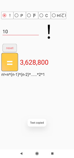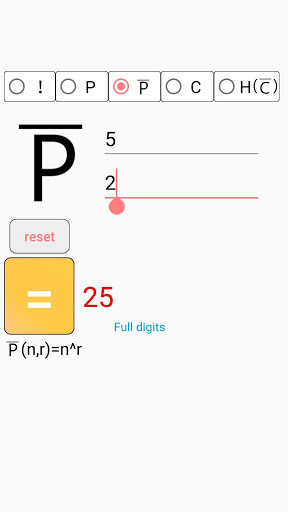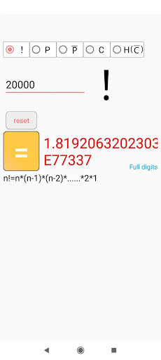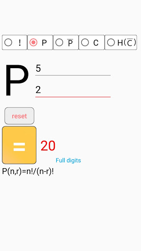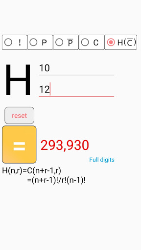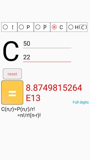 A convenient app for calculating permutations and combinations fast: factorial, P, C, H