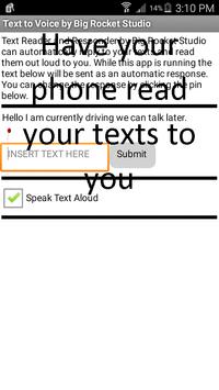 This will be the end to all of the accidents when texting while driving. Big Rocket Studio presents an application that reads all of your texts, and can send an automatic reply.