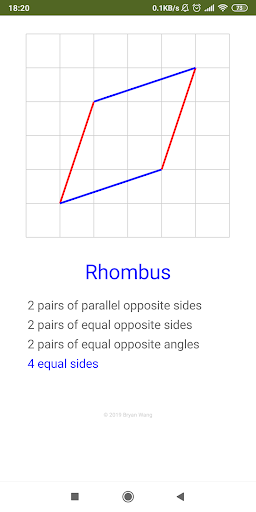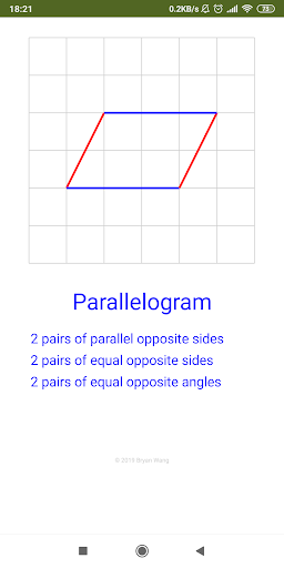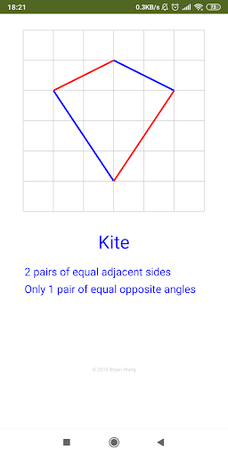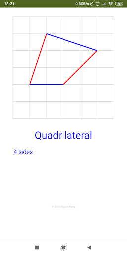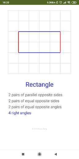 The app allows you to drag corner to draw different quadrilaterals on squared paper. Based on the quadrilateral made, the name of the quadrilateral will be displayed as well as its properties.