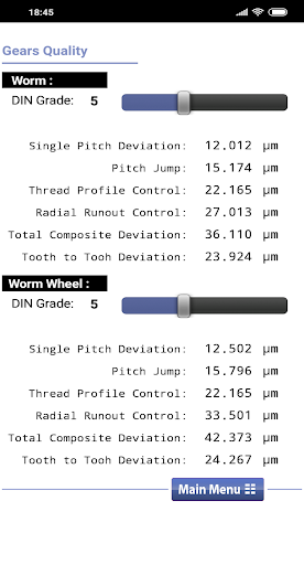 The quality of the gear is giving also. Select the DIN quality grade and the app willcalculate the different possible deviations.