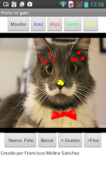 Es una aplicación que permite dibujar sobre un gato. Hay diferentes colores y opciones disponibles. También es posible cambiar la foto sobre la que pintar.