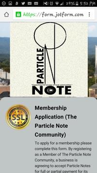 The application will open to a user interface that provides detailed information on joining the Particle Note Community / How it all works /and other tools specific to the use of Particle Notes.